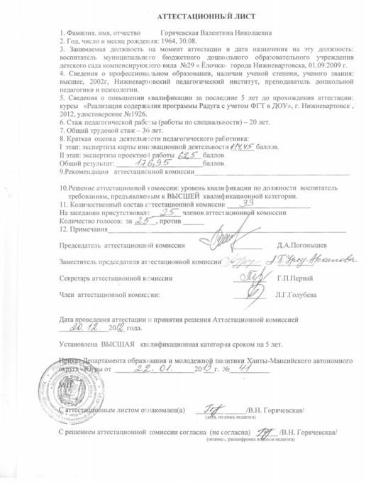 Квалификационная категория: высшая, 2012 год.